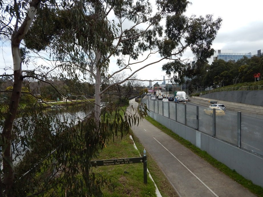 The Cremorne and Richmond section of the Yarra Trail walking and cycling track follows the big loop of the river as it emerges from the city with the Botanic Gardens on one side and the sports precinct on the other.